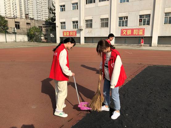 本次活动安排为清扫操场、捡拾垃圾等。同志们集合完毕并领取了扫帚、簸箕、抹布等清洁工具,开始打扫操场各个角落。大家都情绪高涨,在安排好各人所在区域之后开始进行打扫,认真地扫地、倒垃圾、擦洗体育用具。虽然打扫操场的任务对于大家来说并不困难,但每位同志都认真负责,大家互相配合,经过半个小时的清理,跑道、草坪格外干净。看着干净整洁的操场,每位参与本次活动的同志都由衷地开心。