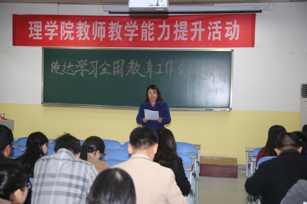 会议开始,李小光书记带领学习了全国教育工作会议内容。强调要全面准确把握习近平总书记关于教育工作重要论述的科学内涵和精神实质,把学习贯彻全国教育大会精神的工作尽快落实到学院工作上来,要求师生齐心协力为学院的期中教学检查和本科院校合格评估做出实在的成绩和贡献,工作上落细落小。并且指出了关心国家发展建设、重视教学科研工作、警惕违规案例的重要性。