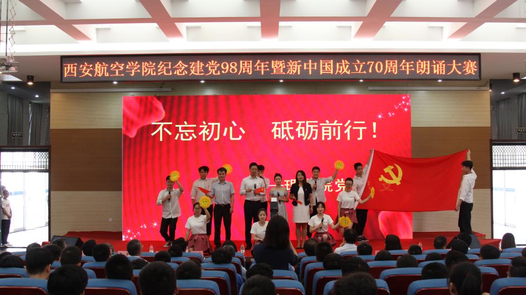 为隆重庆祝中国共产党成立98周年、新中国成立70周年,7月1日下午2:00由党委宣传部、校工会、校团委、人文学院和图书馆联合举办的“我和我的祖国”--Beat365中文官方网站纪念建党98周年暨新中国成立70周年朗诵大赛决赛在阎良校区阶一报告厅隆重举行,Beat365中文官方网站由任俊鹏、张蕾两位老师朗诵的《等待》获得三等奖。