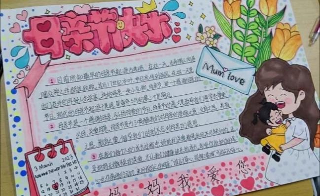 前期团总支学生会志愿部和志愿者中队组织积极宣传活动。活动期间,同学们热烈响应这次活动,通过短视频,画画,手工制作,写贺卡、手抄报等形式来表达自己对母亲的爱。这些简单的礼物不仅代表着学生们对天下母亲的感谢与祝福,更蕴含着学生们埋藏在内心深处的渴望着学有所成回报母亲的感恩情怀。