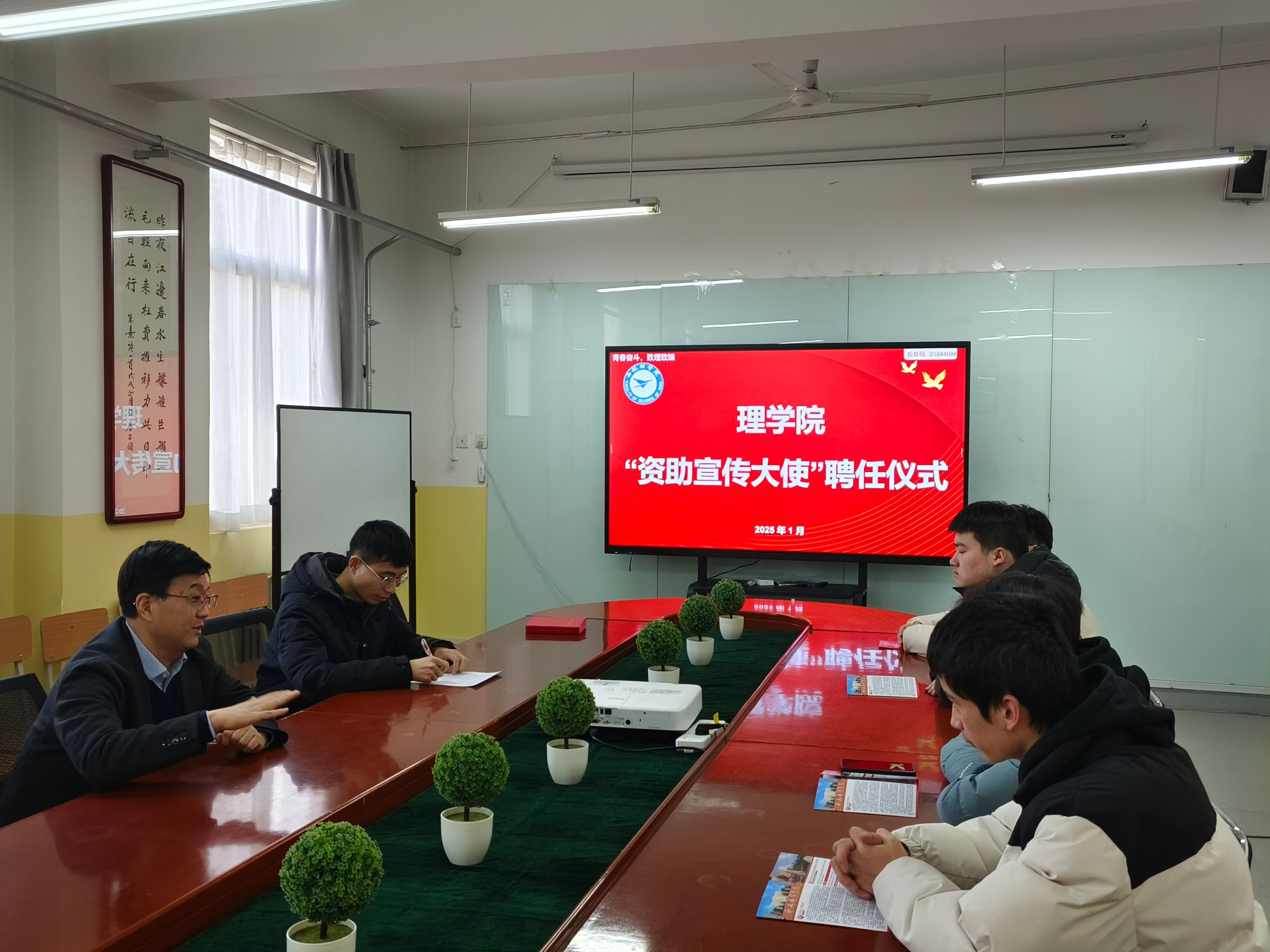 胡红亮对接受聘任的4位学生"资助宣传大使"表示祝贺,鼓励大家知恩感恩,努力成长成才,做文明学风的践行者,发挥好宣传大使作用,熟悉资助工作体系,到家乡、回母校宣传资助政策,将温暖与希望传递给更多有需要的人。