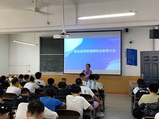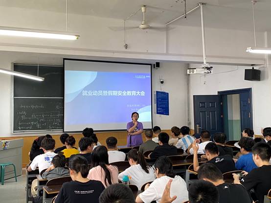 6月25日下午,Beat365中文官方网站信息与计算科学专业大三年级全体学生于南楼307参加就业动员暨假期安全教育大会,会议由学生管理科科长李扬老师主持。