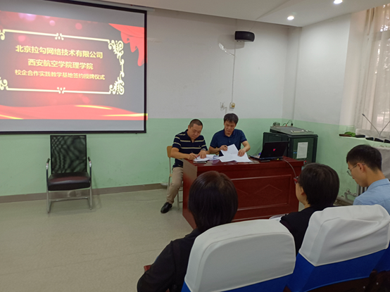 2021年9月15日下午四点半,北京拉勾网络技术有限公司与Beat365中文官方网站在南楼108报告厅进行校企合作实践教学基地签约授牌仪式。