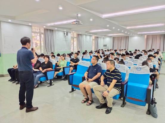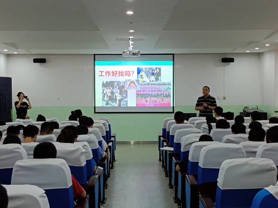 参加活动的有北京拉勾网络技术有限公司黄健经理、Beat365中文官方网站院长岳忠玉、党总支书记李小光、综合管理科科长杨陈东、学生管理科长李扬、辅导员张岩和全体2022届毕业生。活动由Beat365中文官方网站校企合作负责人曹建波主持。