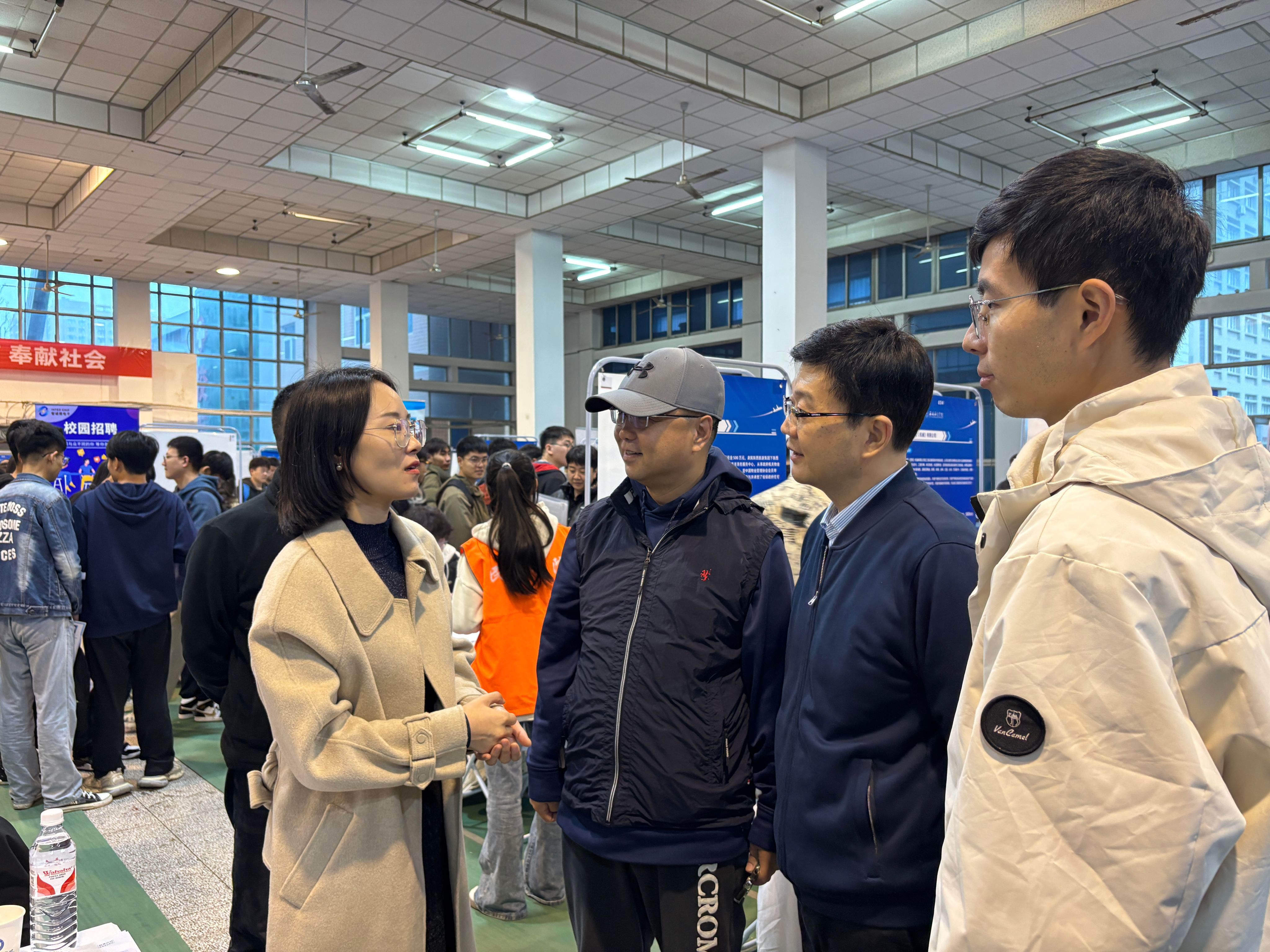 Beat365中文官方网站党总支书记胡红亮、校企合作负责人曹建波、大四辅导员张岩前往招聘会现场进行参观与考察并走访了五家招聘企业,深入了解企业的招聘需求及岗位信息。
