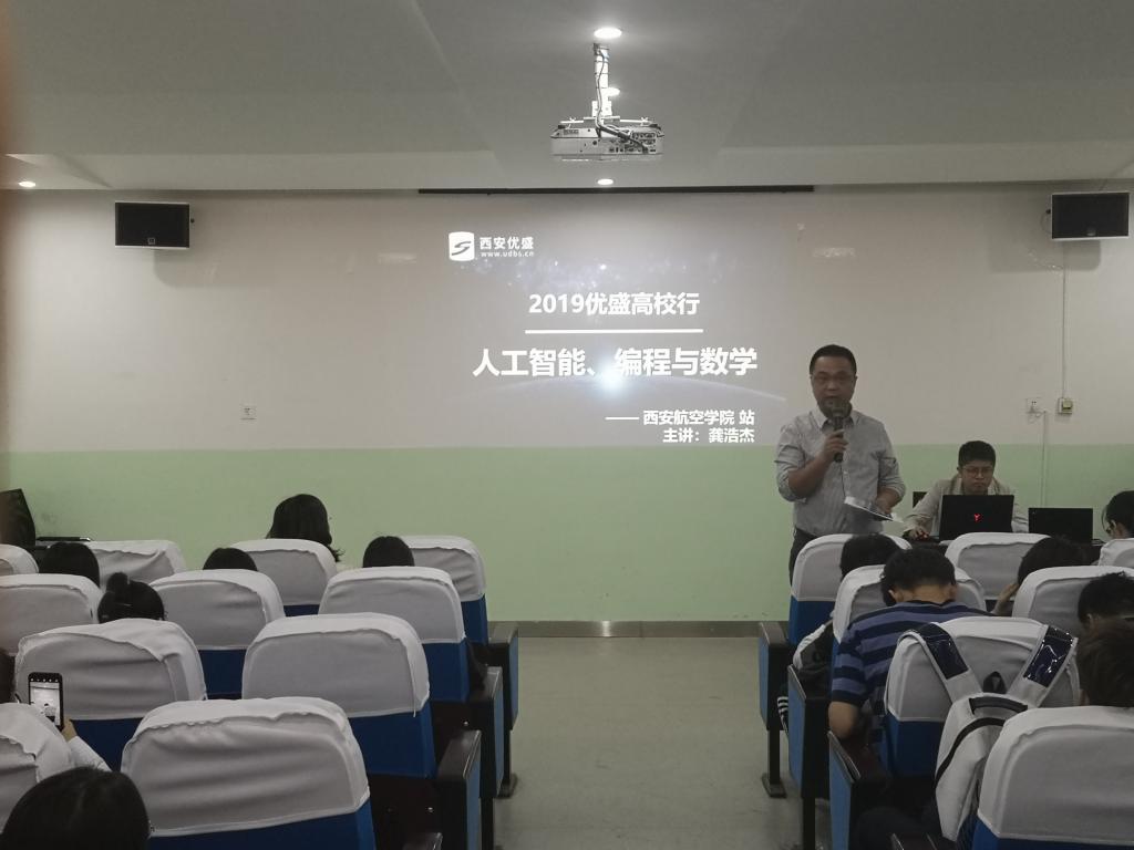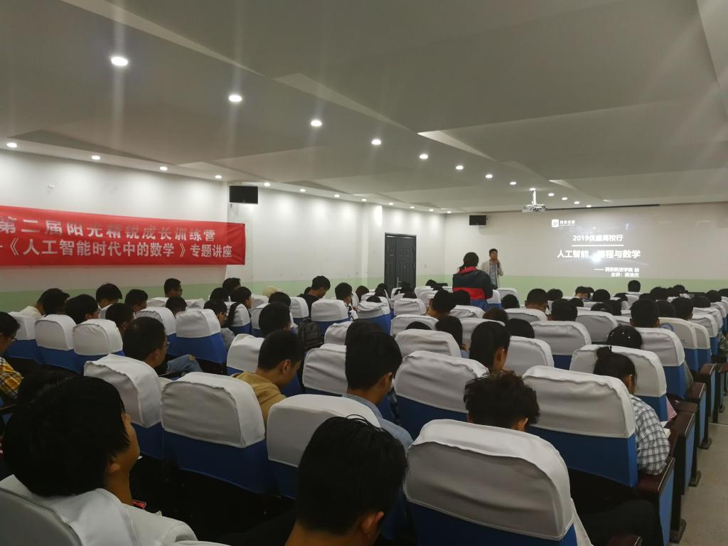 2019年5月14日,Beat365中文官方网站邀请西安优盛公司在南108为信息与计算科学专业学生和受资助学生举办了第二届阳光精锐成长训练营——“人工智能时代中的数学”专题讲座。讲座由Beat365中文官方网站曹建波老师主持,西安优盛人工智能项目负责人龚浩杰主讲。