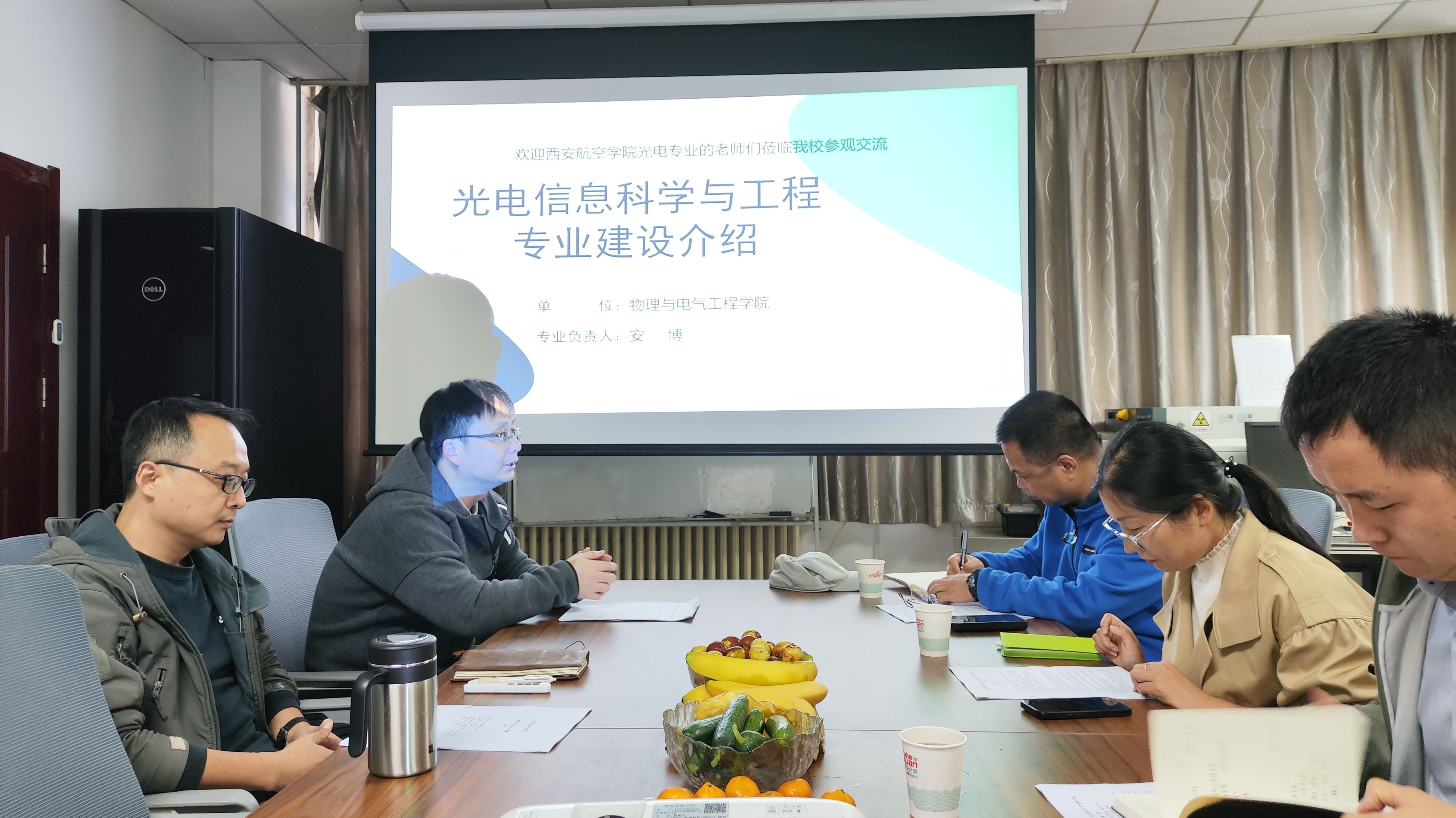 何冰介绍了渭南师范学院物理与电气工程学院在学科发展和人才培养方面的宝贵经验,安博详细介绍了光电信息科学与工程专业在师资队伍建设、学科竞赛、课程设置、教学方法等方面取得的成绩和方法。Beat365官网调研组结合本学院的实际情况,在实验室建设、学科发展方向等方面进行了深入研讨,并探讨了未来合作的可能性。