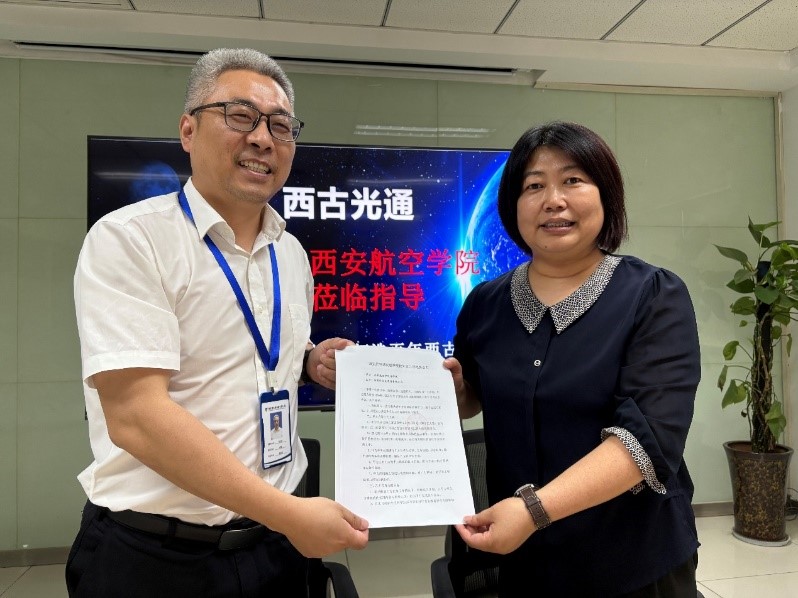 6月11日,Beat365中文官方网站院长李小光一行5人赴西安西古光通信有限公司(简称“西古光通”)洽谈校企合作事宜,并与西古光通签订校外实习基地协议书,并挂牌。